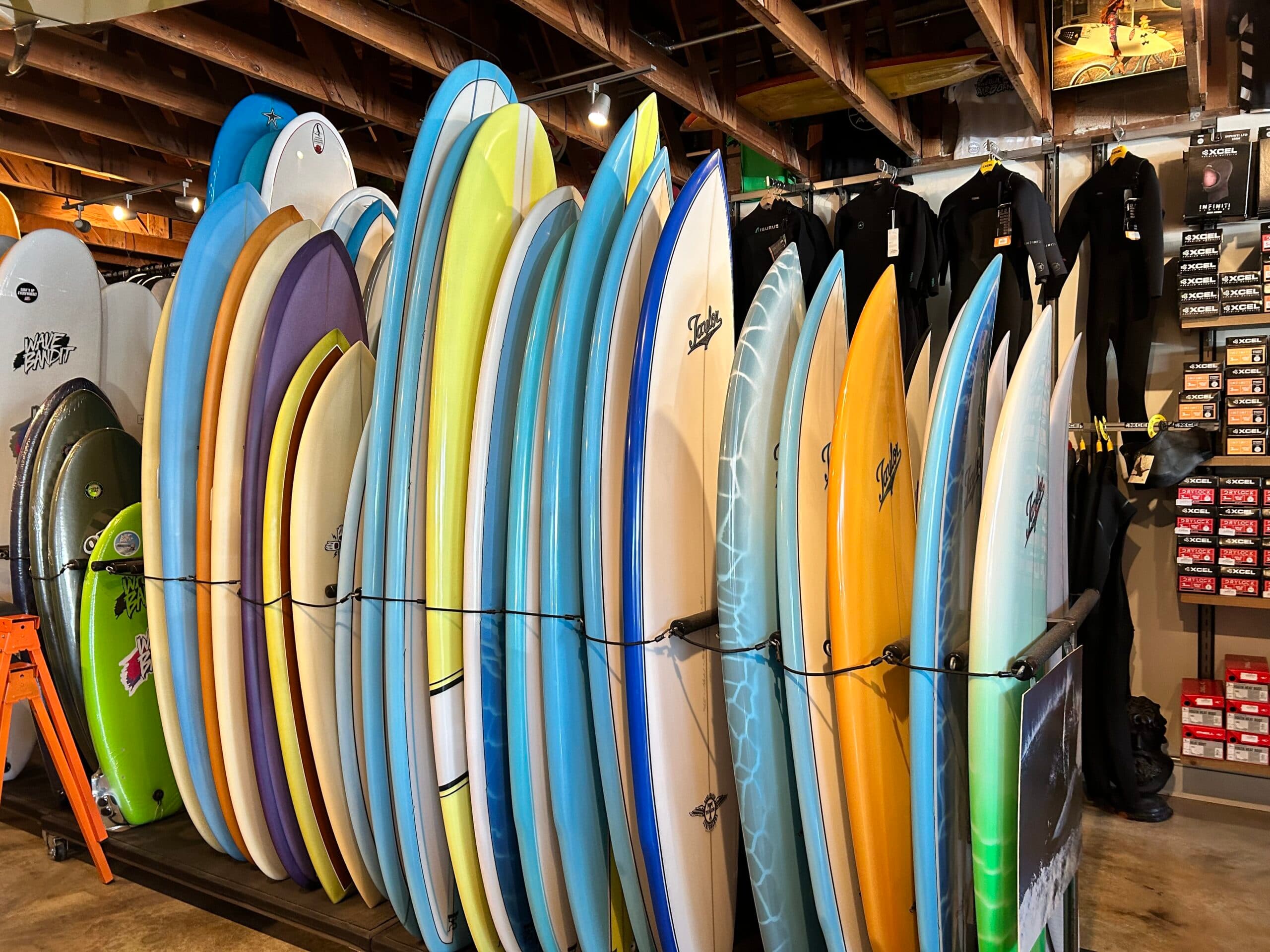 If you surf, you know what a local surf shop is like. It’s a place where you could pop in to buy a bar of wax before a session only to be held hostage for two hours talking about sandbar conditions and fin design with the sales clerk who always sits on a stool back by the used boards who may, or may not, actually work there. Where you could sell that urine-stained wetsuit or water-logged used board on consignment, without having to look into the eyes of the poor schmuck who paid good money for your sullied goods. And, importantly, it’s an important source of local knowledge, a referral base, eager to connect you with any number of local shapers eager to meet over a beer to discuss the dimensions of your next board.