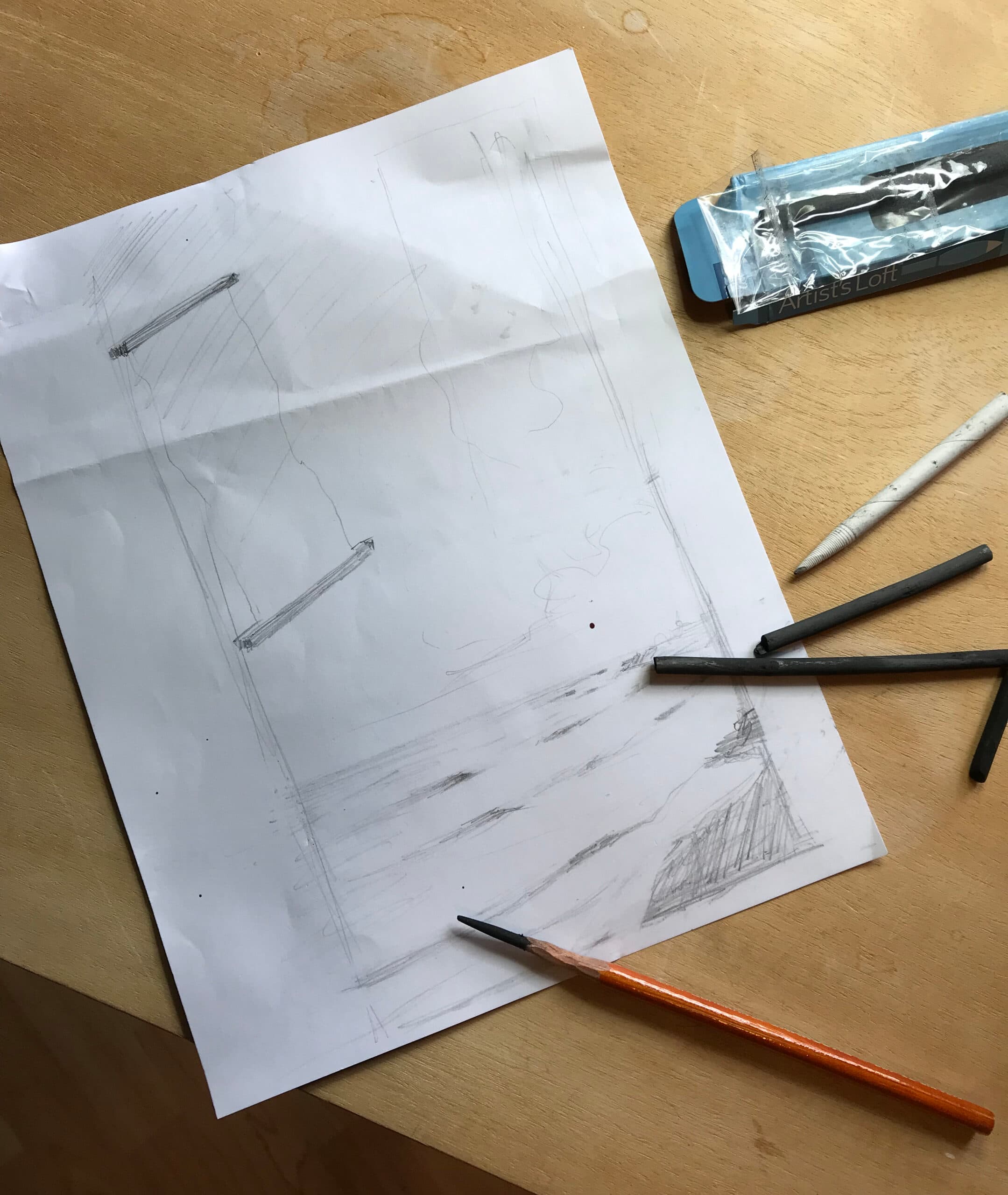 While impressive, these logos only scratch the surface of what this man can create. From side slapping comic strips to beautiful oil paintings, he’s had quite a prolific career. One of his many talents is utilizing graphite and charcoal, with the latter being the media chosen to bring his latest fine art piece, “Dreams” to life, which he details below.