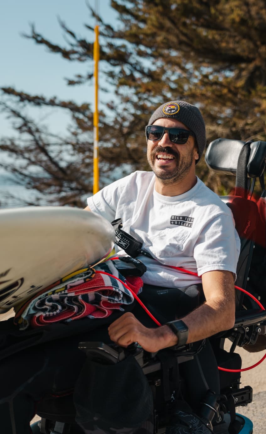 And why are we down here in Santa Cruz? Well, one of the sports we focus on is surfing. And the power of the ocean, the healing of the water, the ability to be out in a lineup with your friends without and type of adaptive devices around you really is empowering. So we’re down here hosting this camp for individuals who’ve sustained these life changing injuries and utilizing the local community of Santa Cruz, the incredible healing power of the ocean, and the amazingness that is the sport of surfing, to heal them further.