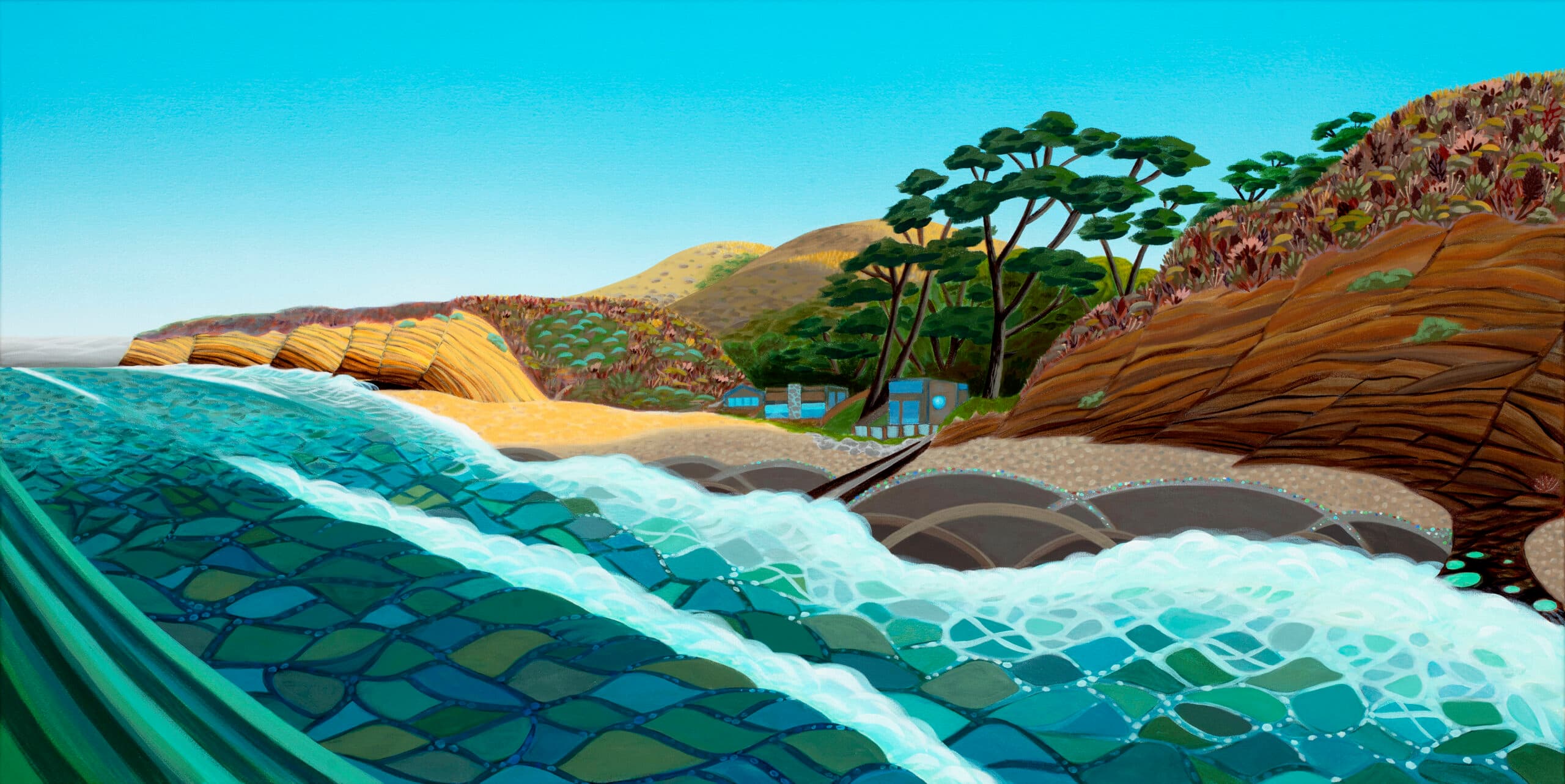 Hasty’s work, which includes mercurial depictions of coastal and forest settings, are a delight to behold, transporting viewers into stylized scenes full of vibrant color and whimsical charm.